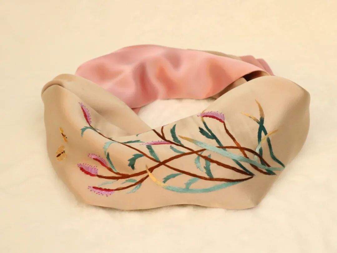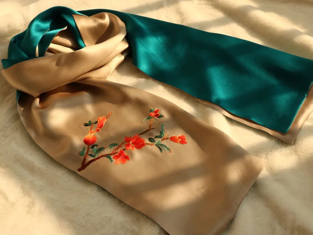 作品说明:铜草花,有着财富和好运意义,适合作为黄石特色旅游礼品。荷包/香包,近年来古风文化盛行,汉服大热,此荷包可与汉服搭配使用,也可做香囊置于车内、室内,内胆香料可根据个人喜好更换。将铜草花绣于丝巾之上,也是将美好的祝福带给每一位来到黄石的她。石榴花丝巾,以市花结合非遗手工技艺作为礼物赠送他人,一针一线,是我们黄石人对友人最崇高的敬意。