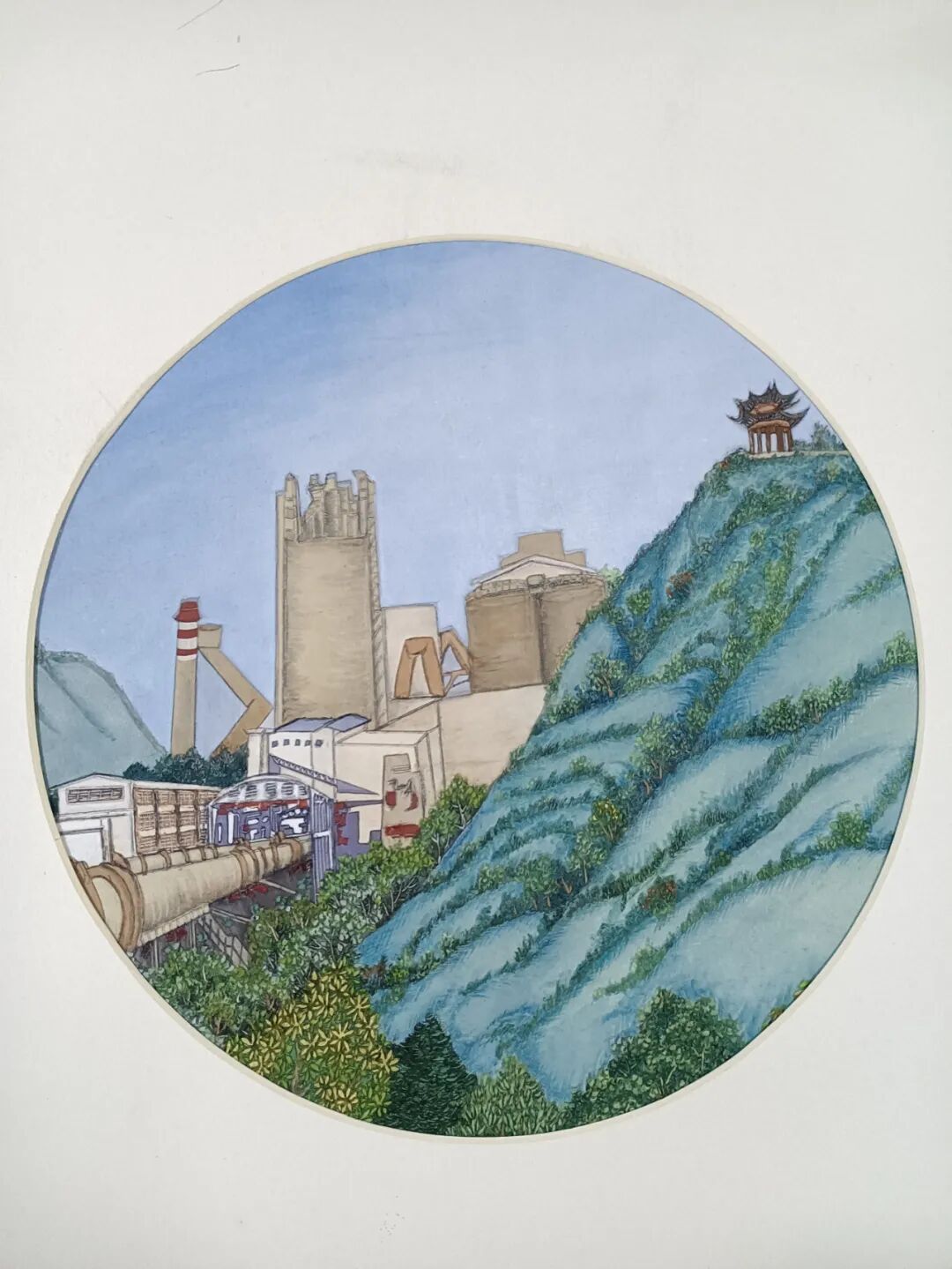 作品说明:布烙画作品《百年华新》是描绘华新工业遗址和黄石八景之一的海观山挹江亭。1958年毛泽东主席视察黄石,在海观山挹江亭凭栏远眺,赞誉华新水泥为“远东第一”。布烙画作为创新的传统工艺,用图画的形式描绘传播城市人文景观,助力黄石文化形象的提升。