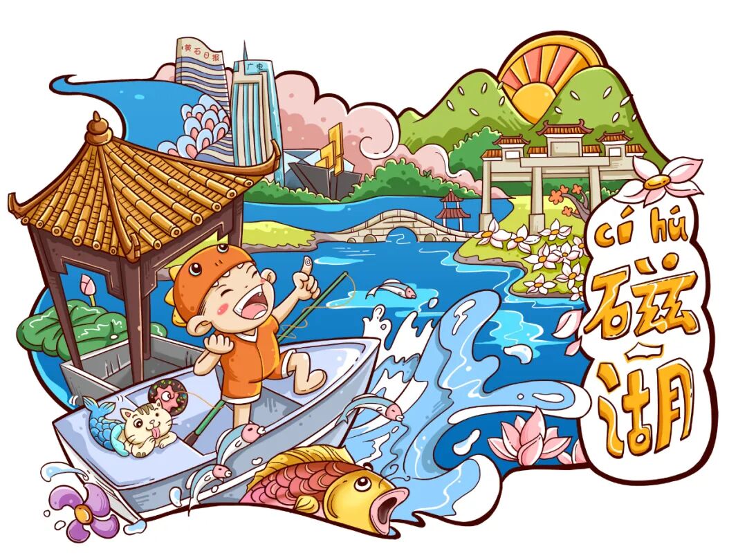 作品说明:通过多年在黄石的生活经历提炼出黄石本地较为知名的两“湖”两“山”四个风景区进行原创手绘画面的创作,通过创意将景区周边建筑等元素进行融合,力求在可爱清新的画风中准确的表达设计内容与意图,宣传美丽的山水黄石。