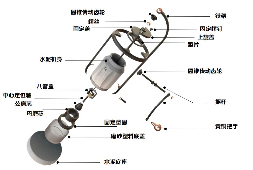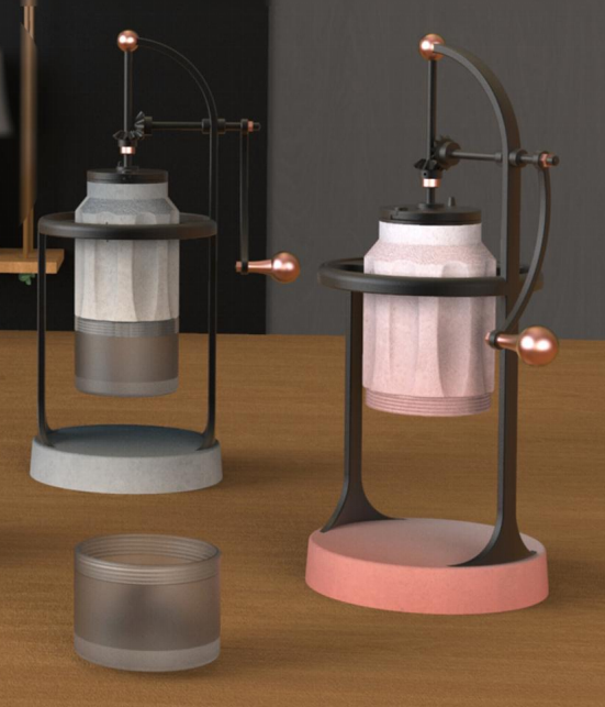 作品说明:打造“水泥故乡黄石”的特有文创产品。为喜爱喝手磨咖啡的人士设计,为手磨咖啡豆的过程增添音乐元素。手摇之时,音乐响起,感受咖啡豆浓浓的醇香,聆听优美的乐音,让喝咖啡更加优雅,让休闲的时光更加惬意。