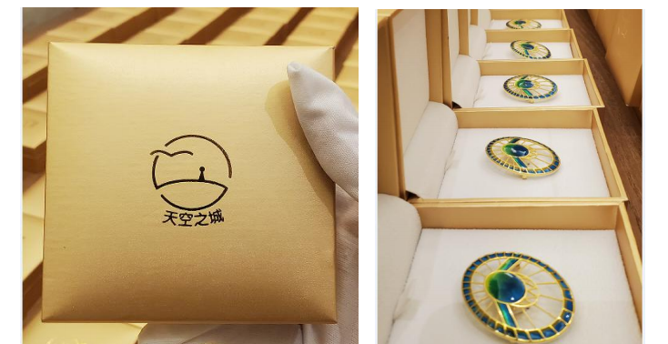 作品说明:本作品为黄石天空之城景区在文创领域的一次全新的尝试,也是与上海老凤祥珐琅艺术有限公司首次跨界合作。因胸针色如翡翠,故取名翡翠恋人。写尽了玉石的坚贞之性,而被誉为硬玉之王的翡翠,自古以来便常作为爱情的信物,同时也寓意着爱情历久弥新,与天空之城景区主题相呼应(海拔520,1314米,寓意我爱你一生一世)。而胸针是女性优雅的体现,也是气质的彰显。它是品味和个性的真实写照,同时兼具实用性和艺术性。