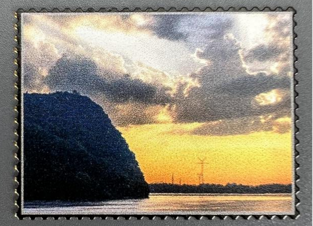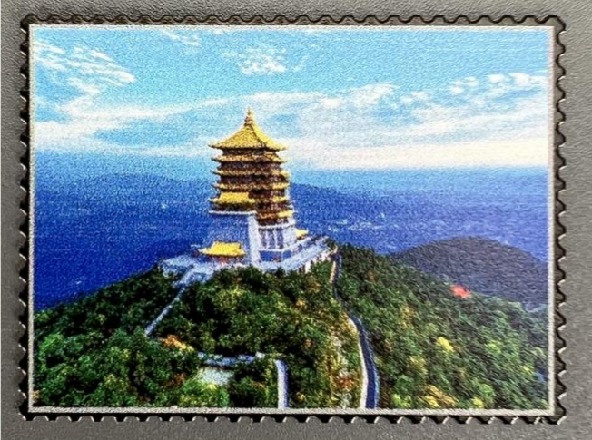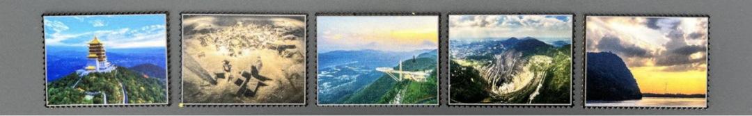金结的制作选用邮票这种熟知的形式表达,更能给人一种亲切感。黄石风景金箔画面上选用了黄石市具有代表性的六处景点。它们代表着黄石是一座具有矿冶文化古都、具有深厚工业文化底蕴的城市;而东方山、西塞山、仙岛湖与天空之城则代表着黄石又是一座具有悠久历史文化的山水园林之城。