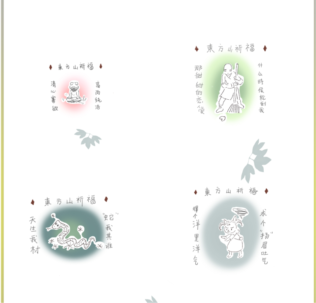 《东方山祈福集章手册》由古朴的洒金纸封面和烫金烫银印刷技术为封面和封底。本产品为黄石东方山旅行珍藏收集品,十二生肖印章可结合遮盖防水贴纸和黄石不同景点进行叠加式印画,可以玩出千人千面的画幅特性。适合送给不同生肖的友人,也可以自己体验古老的城市文化时也体验古老的套色书画印刷幻化的新时代生机。