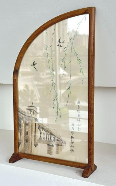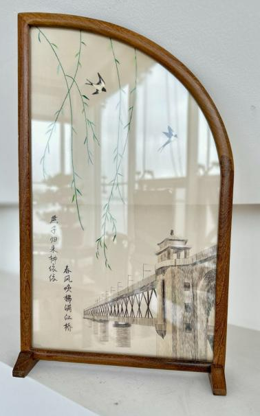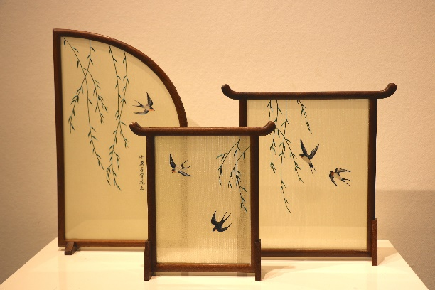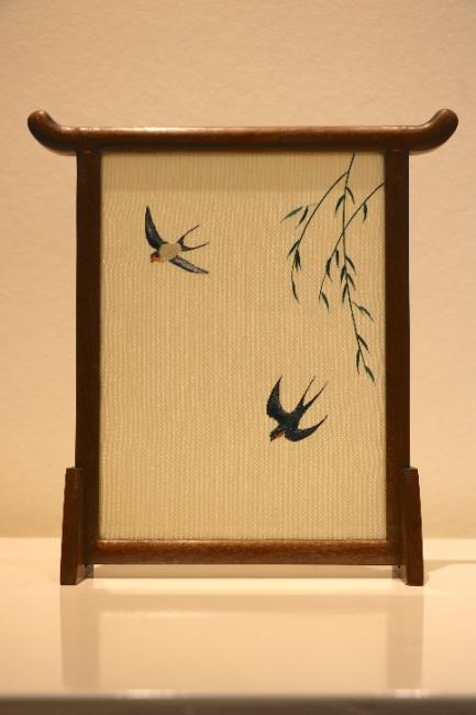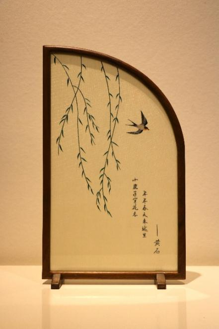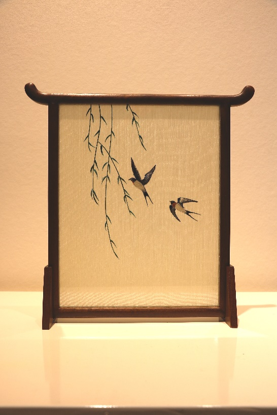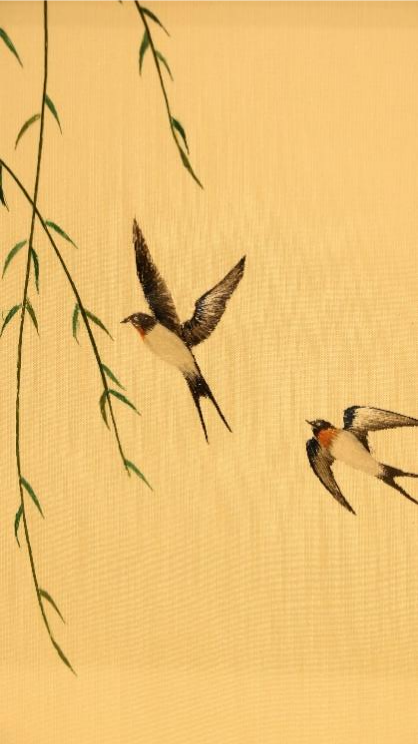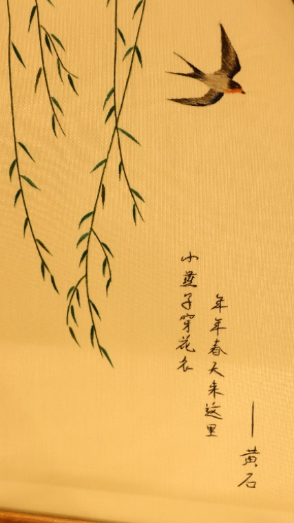作品用非遗技艺大冶刺绣绣制了归来小燕子和嫩绿的柳枝,不仅寓意着春天的到来,更是表达了黄石对来往人们的欢迎之意和美好祝福。