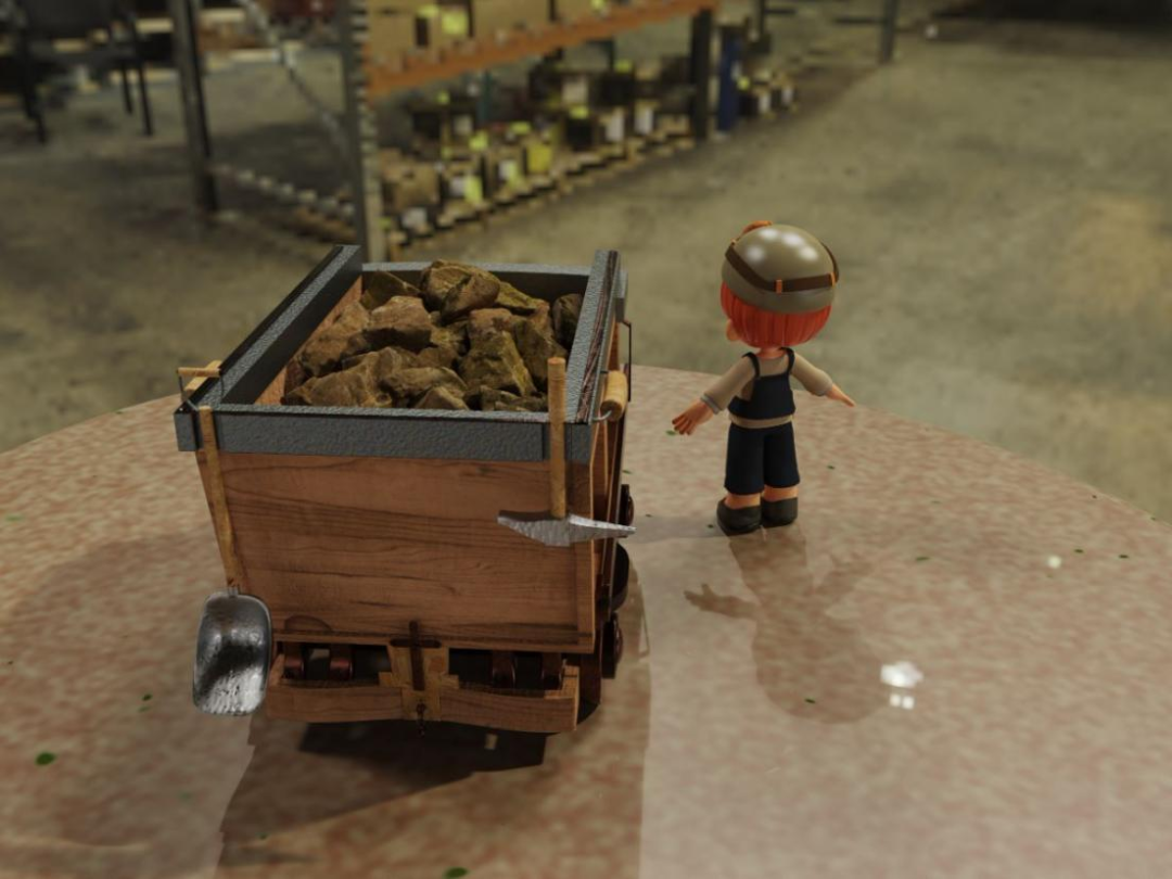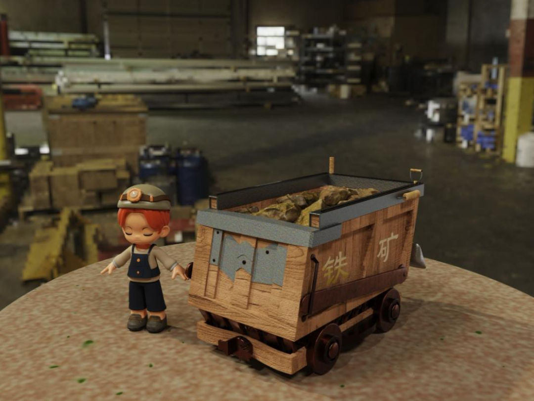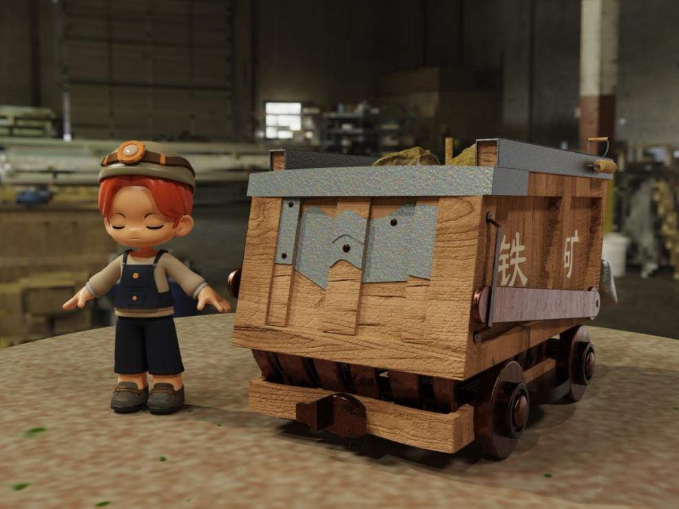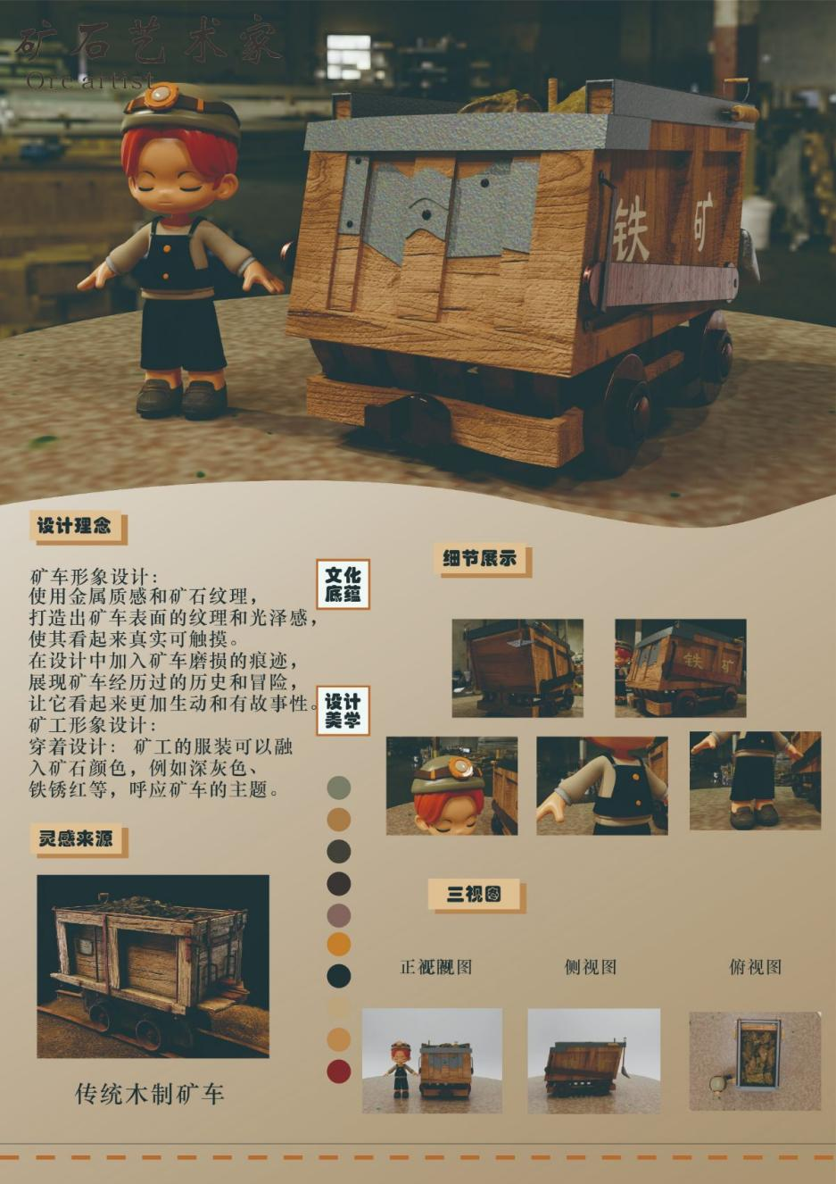 穿着设计:矿工的服装可以融入矿石颜色,例如深灰色、铁锈红等,呼应矿车的主题。