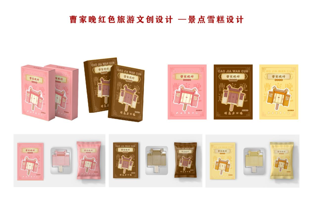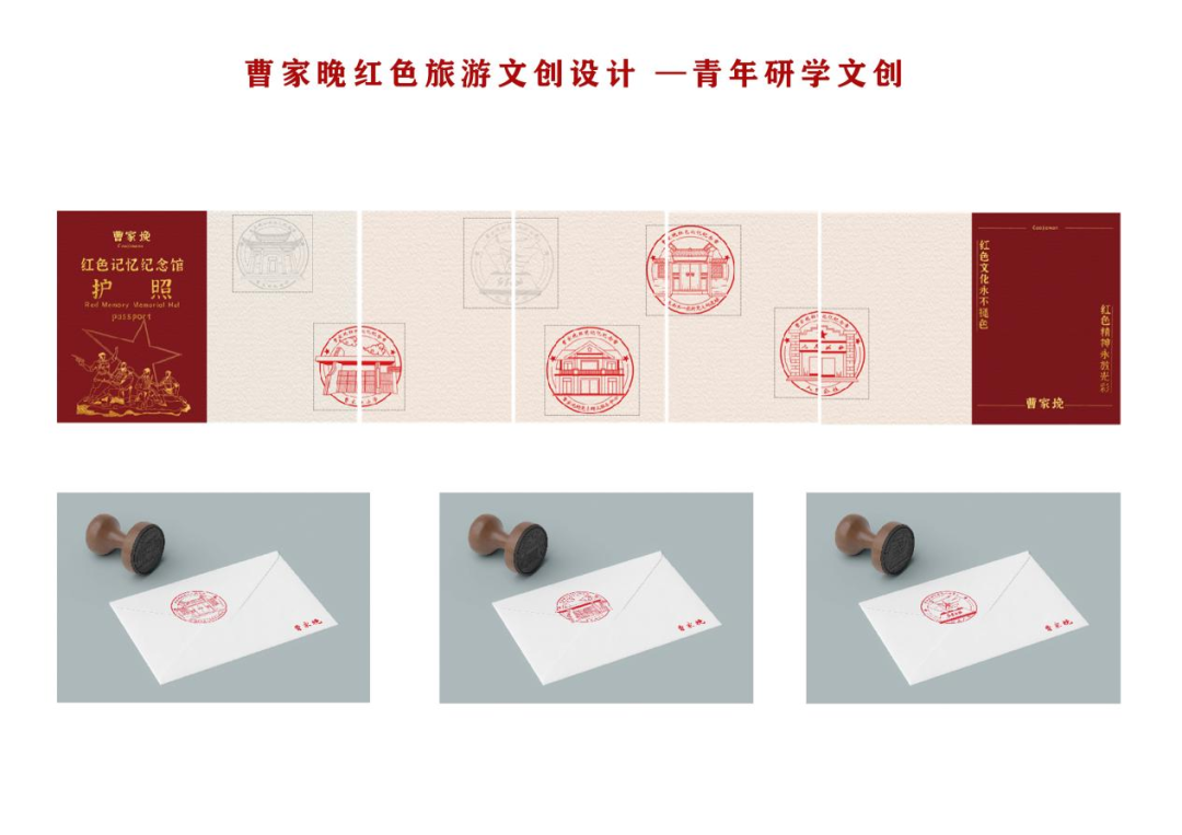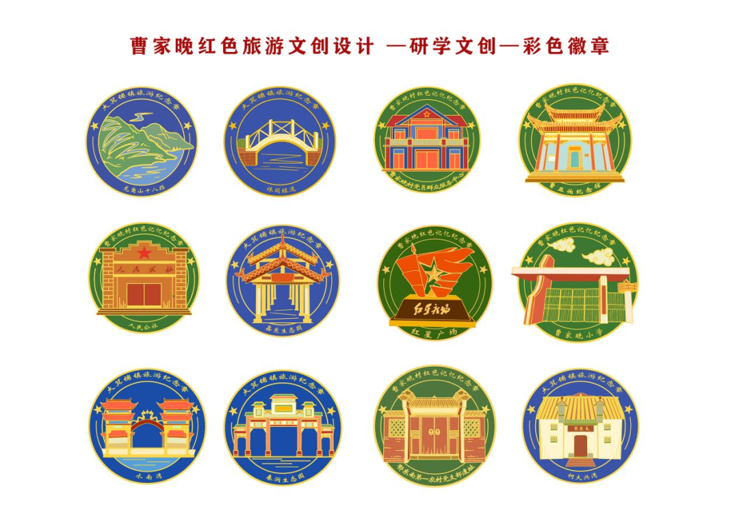 以曹家晚村的红色文化建筑特色为主,采用当地人民公社建筑特色,与五角星结合体现当地浓厚的红色文化与人文特色;单色咖色搭配鲜艳的红色五星给人沉稳、庄重、坚定的美。