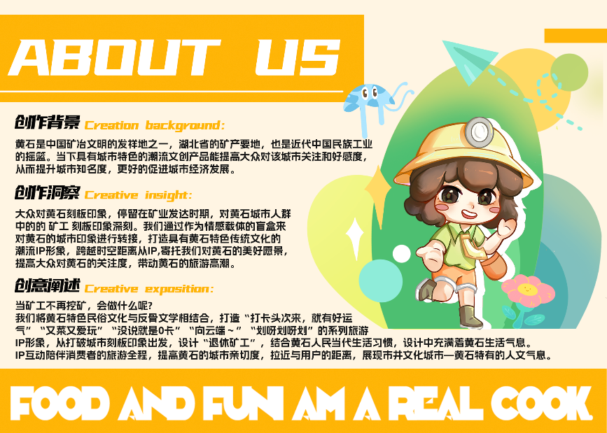 我们将黄石特色民俗文化与反骨文学相结合,打造“打卡头次来,就有好运气”“又菜又爱玩”“没说就是0卡”“向云端~”“划呀划呀划”的系列旅游ip形象,从打破城市刻板印象出发设计“退休矿工”,结合黄石人民当代生活习惯,设计中充满着黄石生活气息。