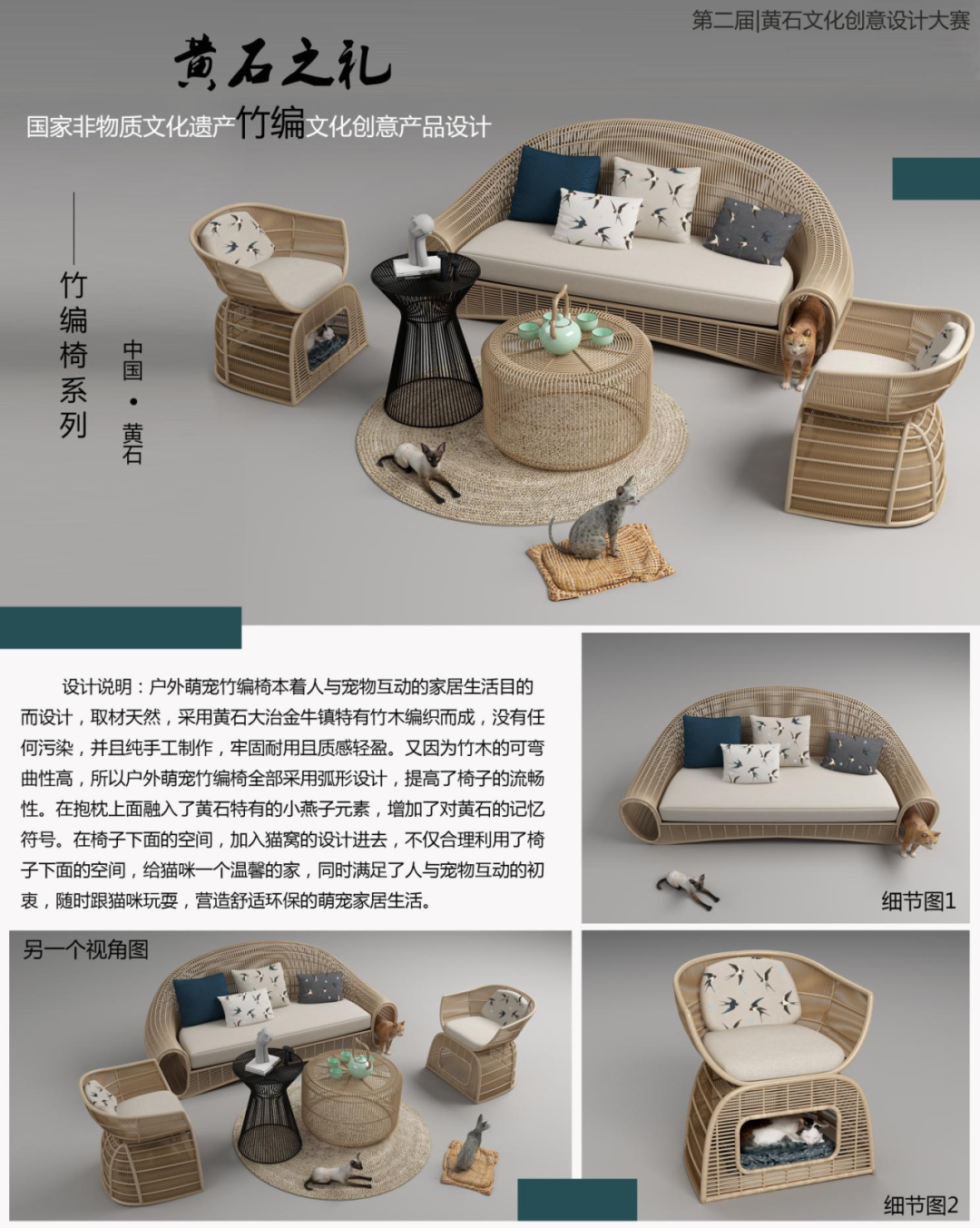 黄石之礼的这4个系列的产品分别是时尚包系列、宠物包系列、置物架系列、椅子系列等等,可以说是给了黄石大冶金牛镇的竹编带来了无限可能,再加上竹编的纯手工技艺的打造,更加突出了产品的精益性,将非遗与现代产品相结合,整体更加时尚、美观,还可以带动非遗文化的发展。