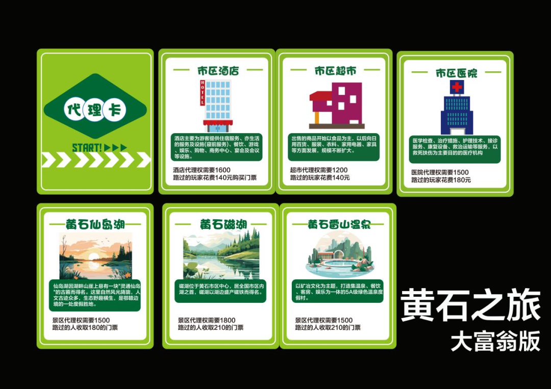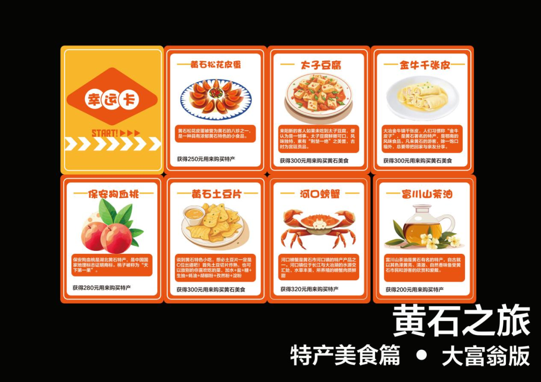 棋盘中不仅囊括了黄石知名景点,更是艺术创作了许多黄石景点作为设计元素,便于玩家了解各个景点,配套还设置了有关黄石的特产,美食,让玩家更有乐趣去了解当地的美食文化。