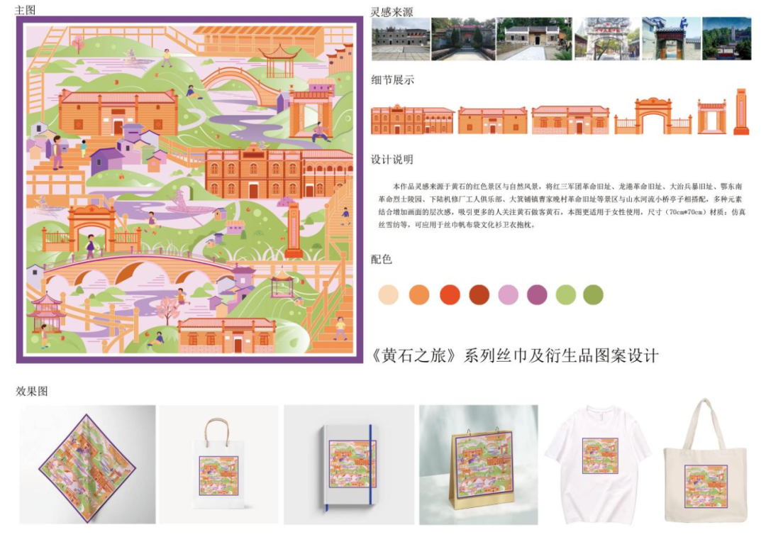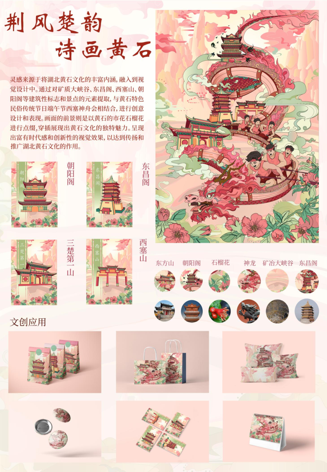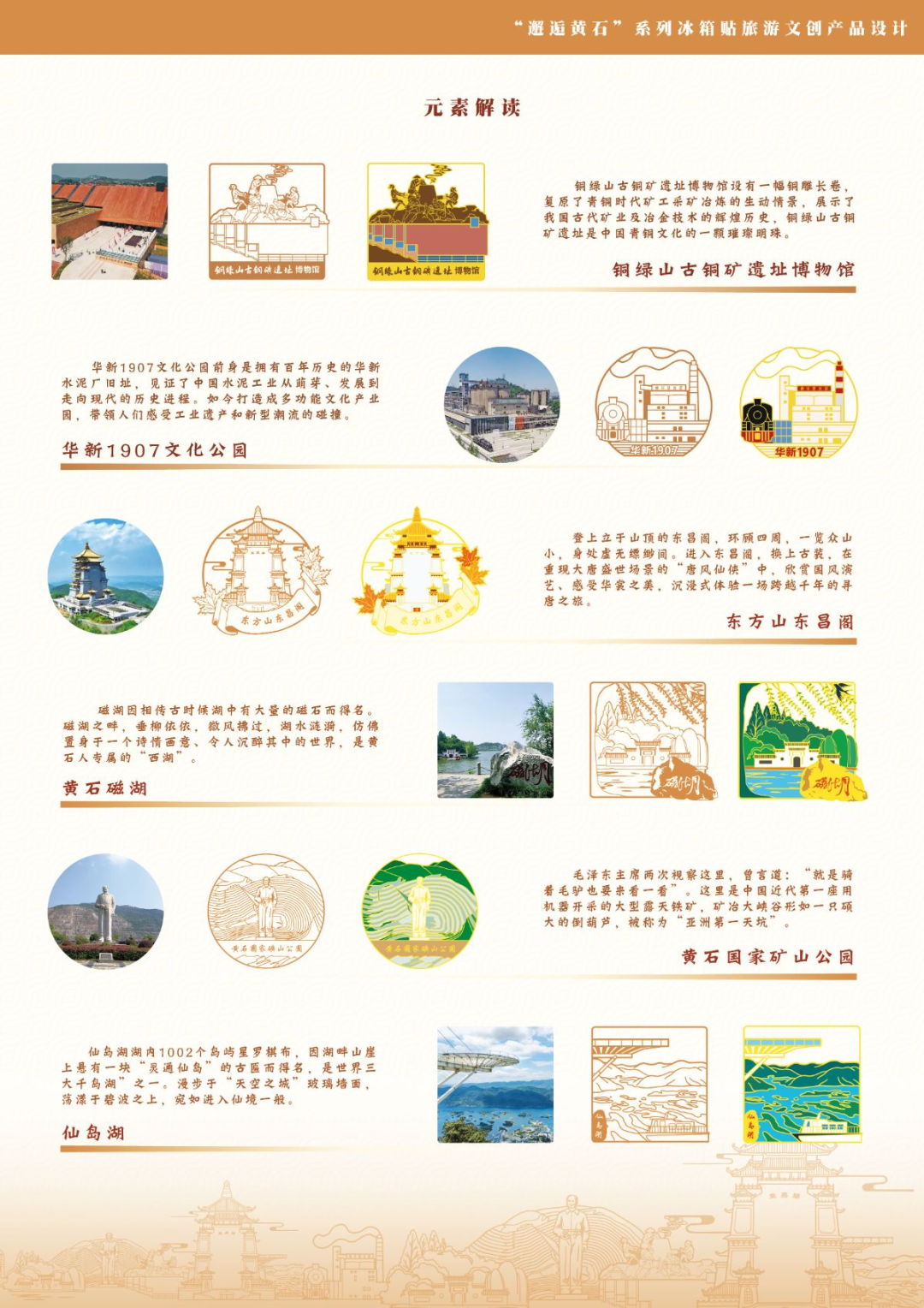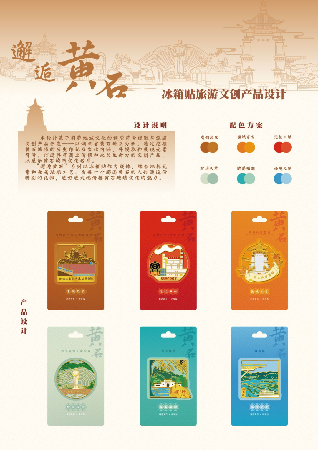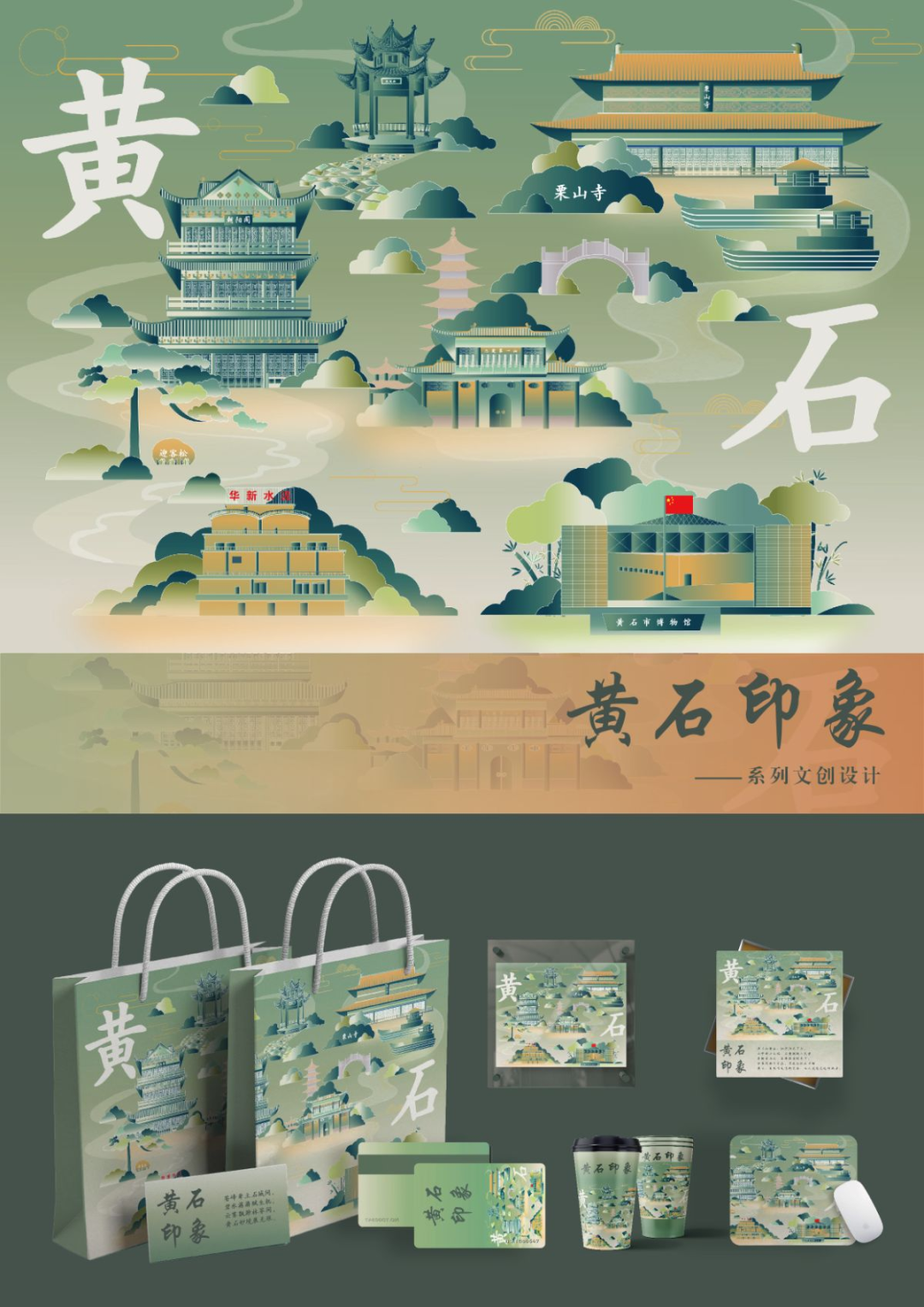 本设计基于荆楚地域文化的视觉符号提取与旅游文创产品开发——以湖北省黄石地区为例。通过挖掘黄石城市的历史印记及文化内涵,并提取和展现元素符号,打造具有商业价值和永久生命力的文创产品,以展示黄石城市文化名片。