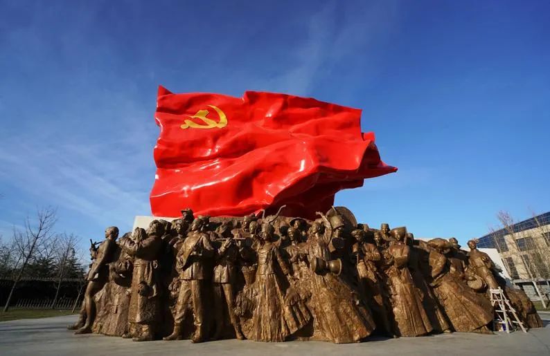 看红色经典 学百年党史(十) | 大型黄铜组雕《旗帜》