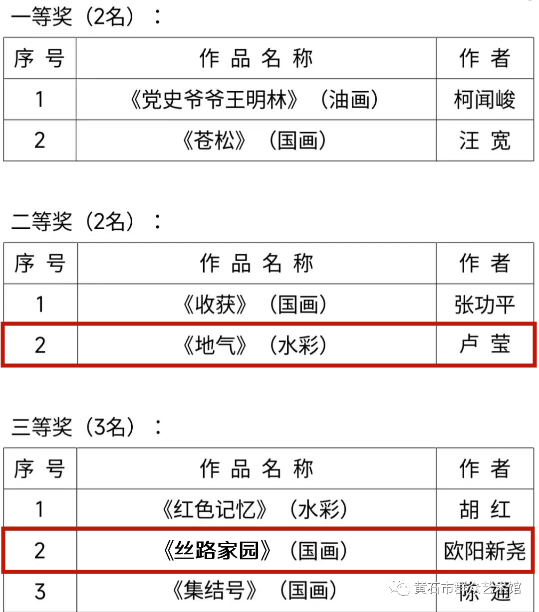 美术类获奖作品名单( 50幅)