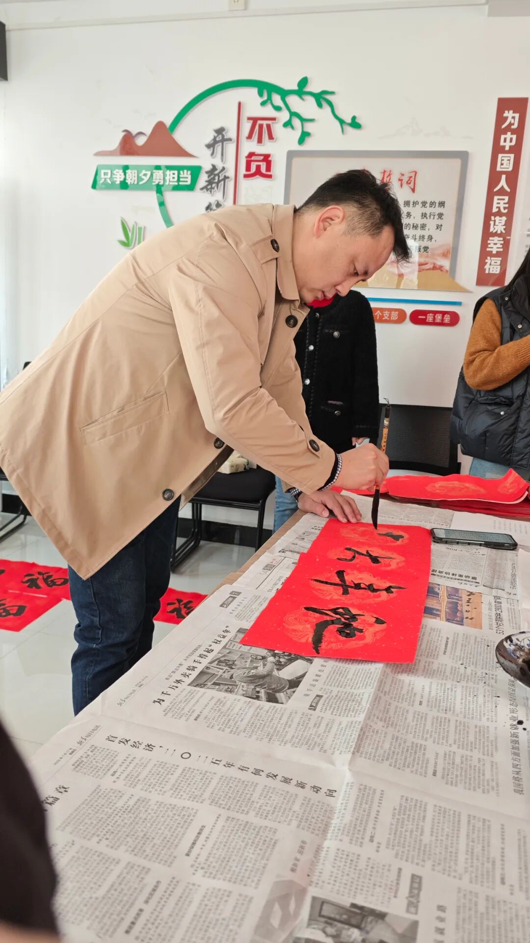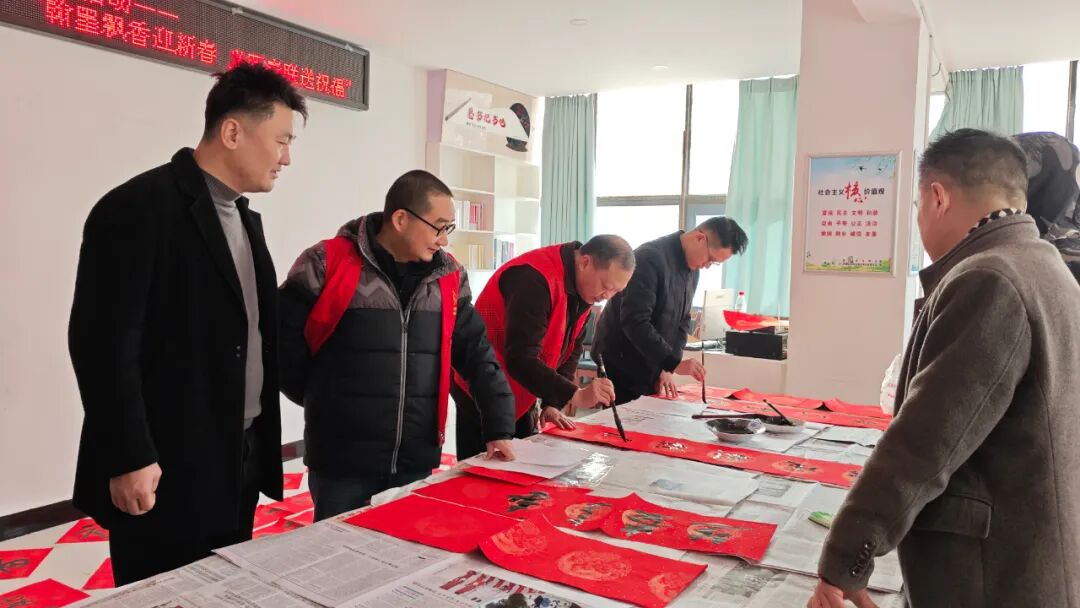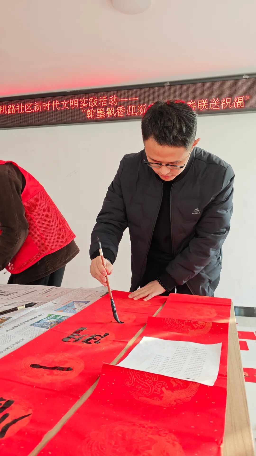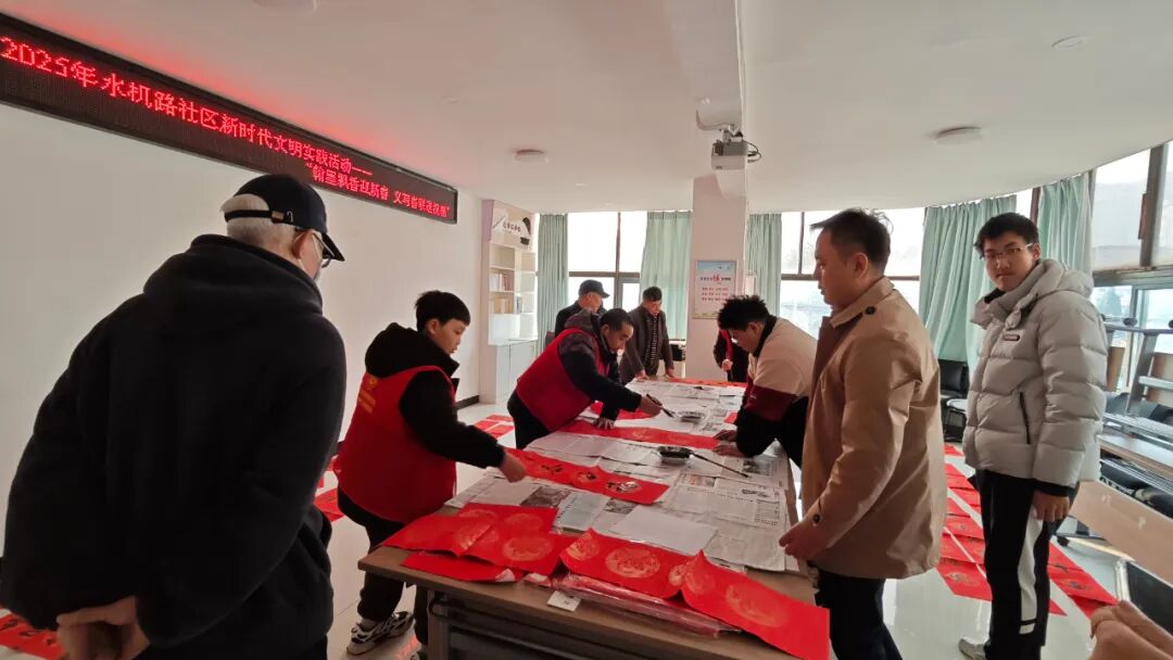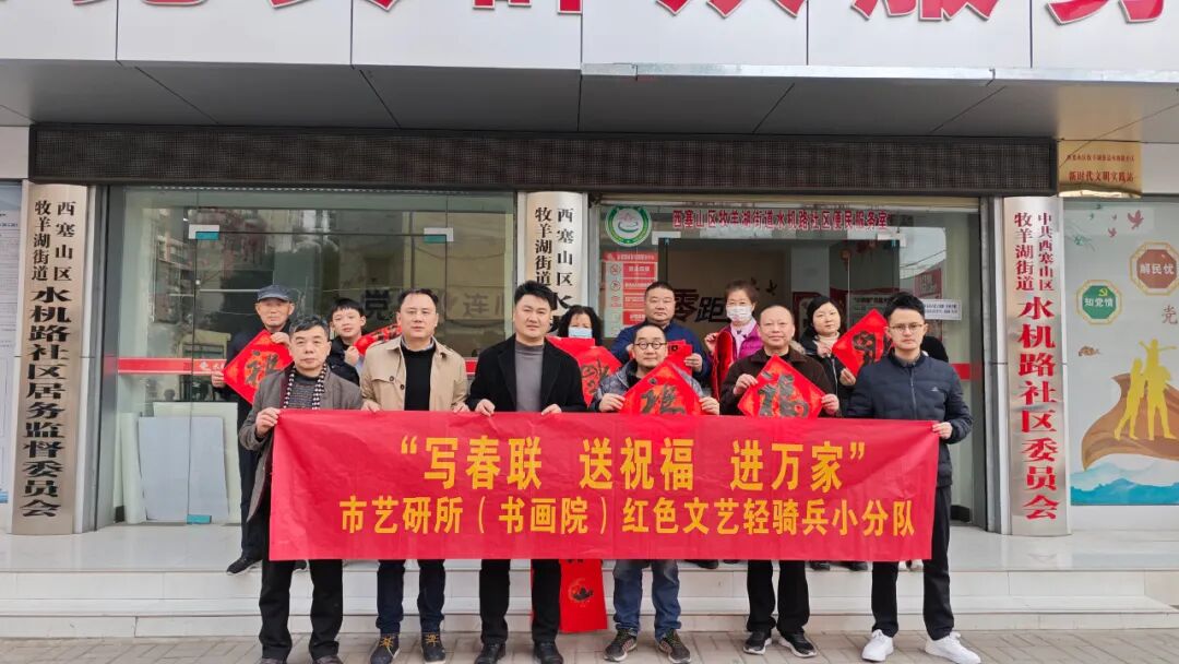 为深入贯彻落实党的二十届三中全会精神,积极践行习近平文化思想,大力弘扬中华优秀传统文化,1月21日上午,市艺研所(书画院)组织“红色文艺轻骑兵”小分队走进水机路社区,践行文化惠民政策,深入基层服务群众,开展“写春联、送祝福、进万家”春节文化惠民活动与“一下三民”实践活动。市艺研所(书画院)负责人、书画院书法家,以及社区书记、干部职工和部分居民参加了此次活动。