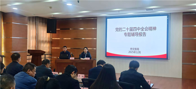 为深入学习宣传贯彻党的二十届四中全会精神,推动党的创新理论和路线方针政策直达基层、凝聚奋进力量,12月8日下午,市文化和旅游局在市群艺馆报告厅举办市文化和旅游系统党的二十届四中全会精神专题辅导报告会。