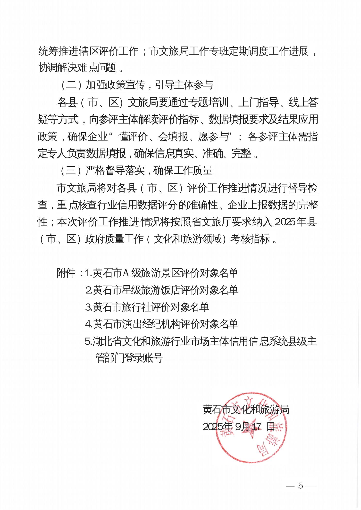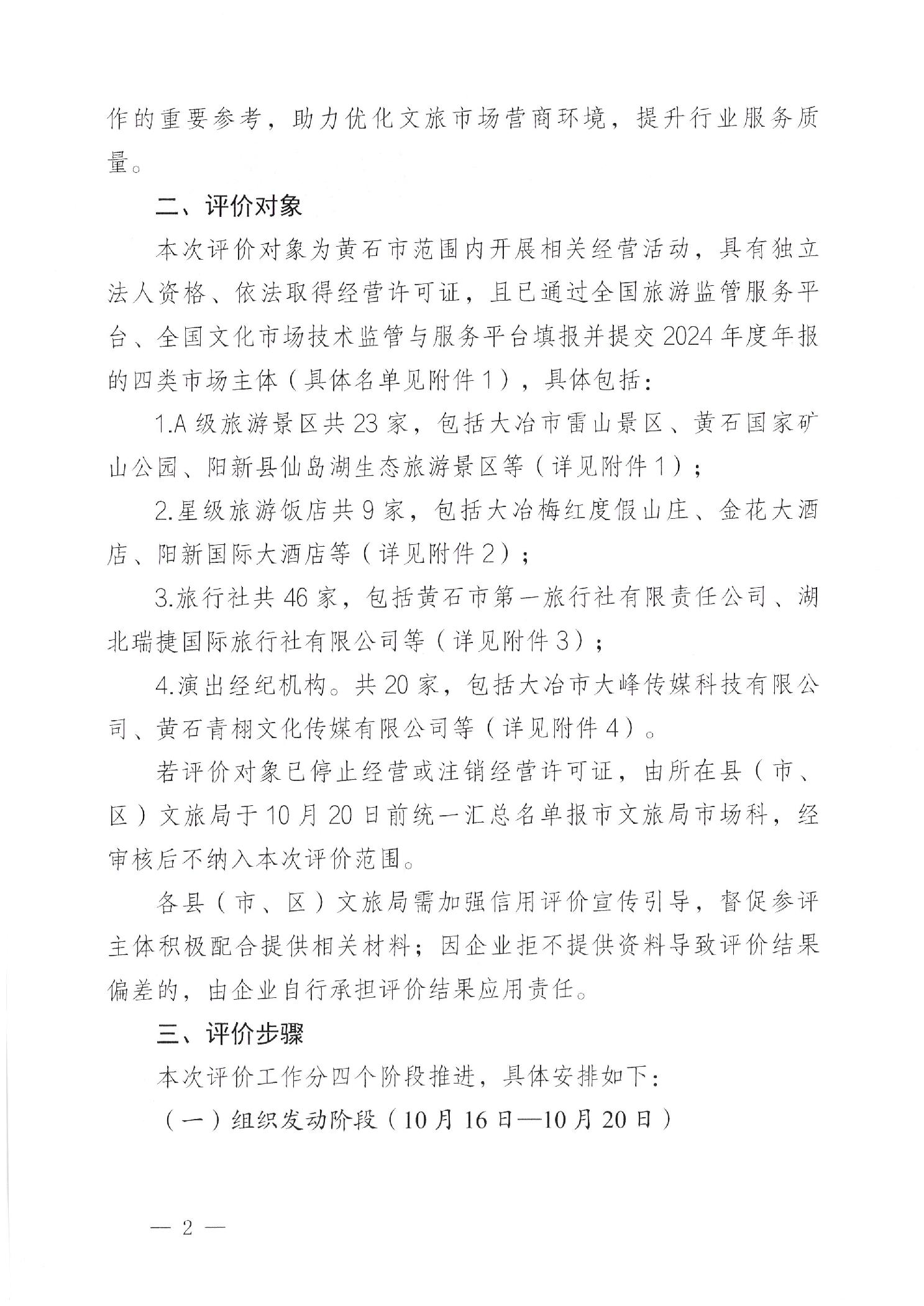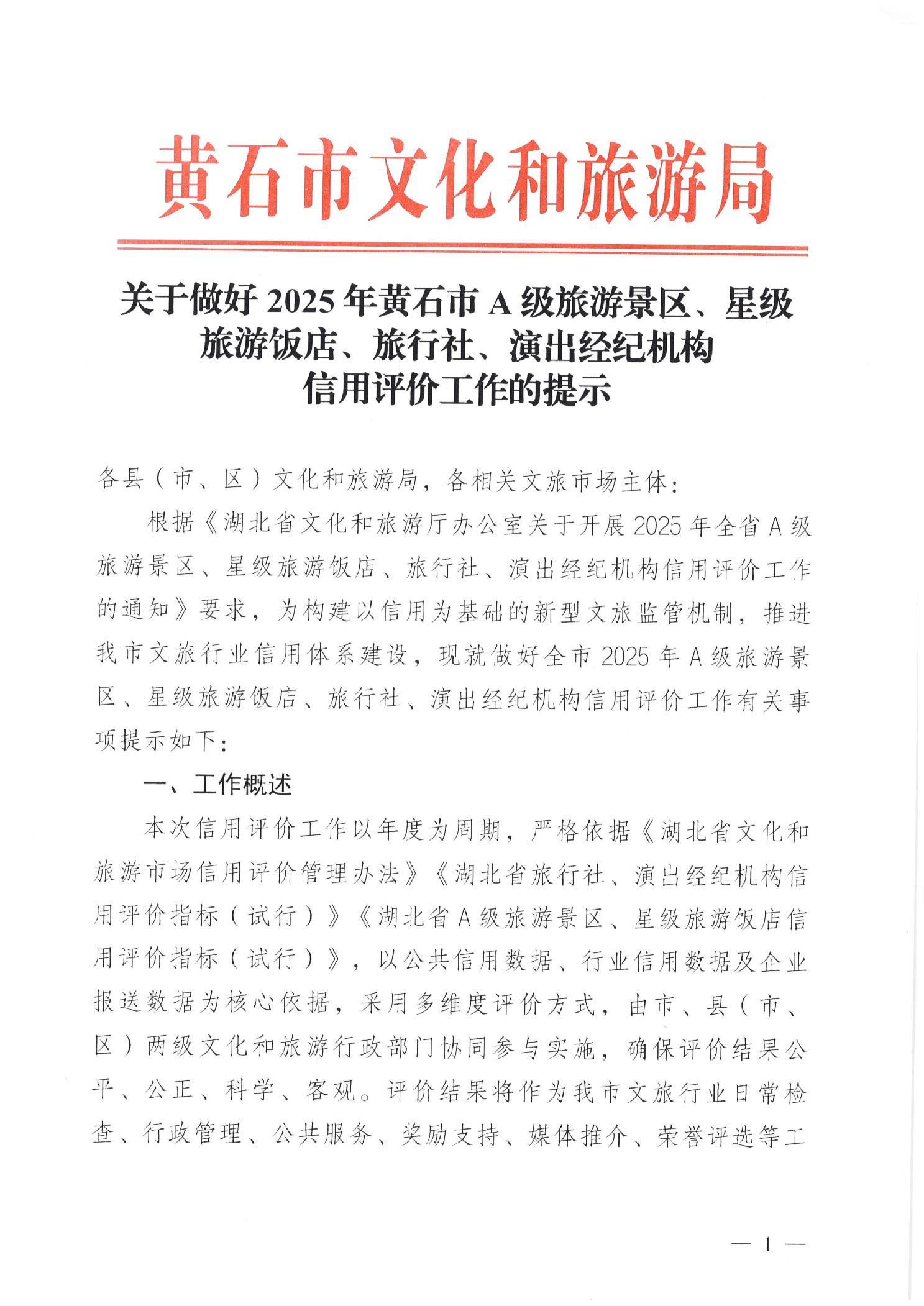 关于做好2025年黄石市A级旅游景区、星级旅游饭店、旅行社、演出经纪机构信用评价公式的提示