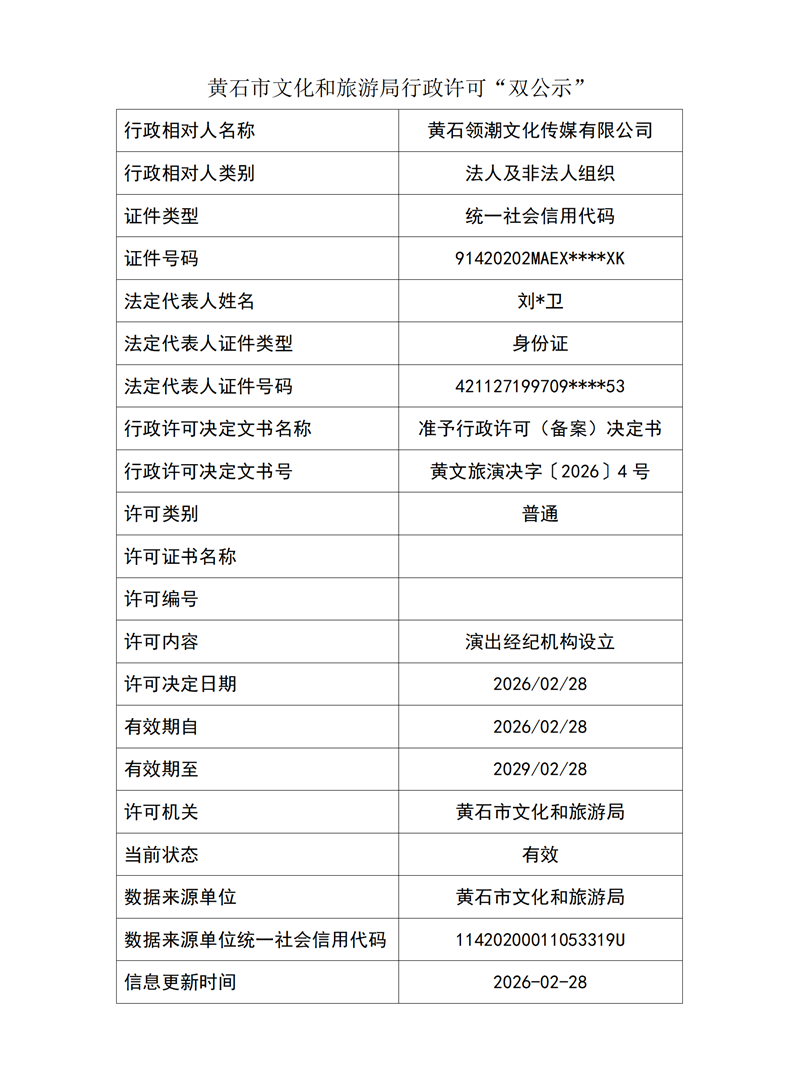 黄文旅演决字〔2026〕4号