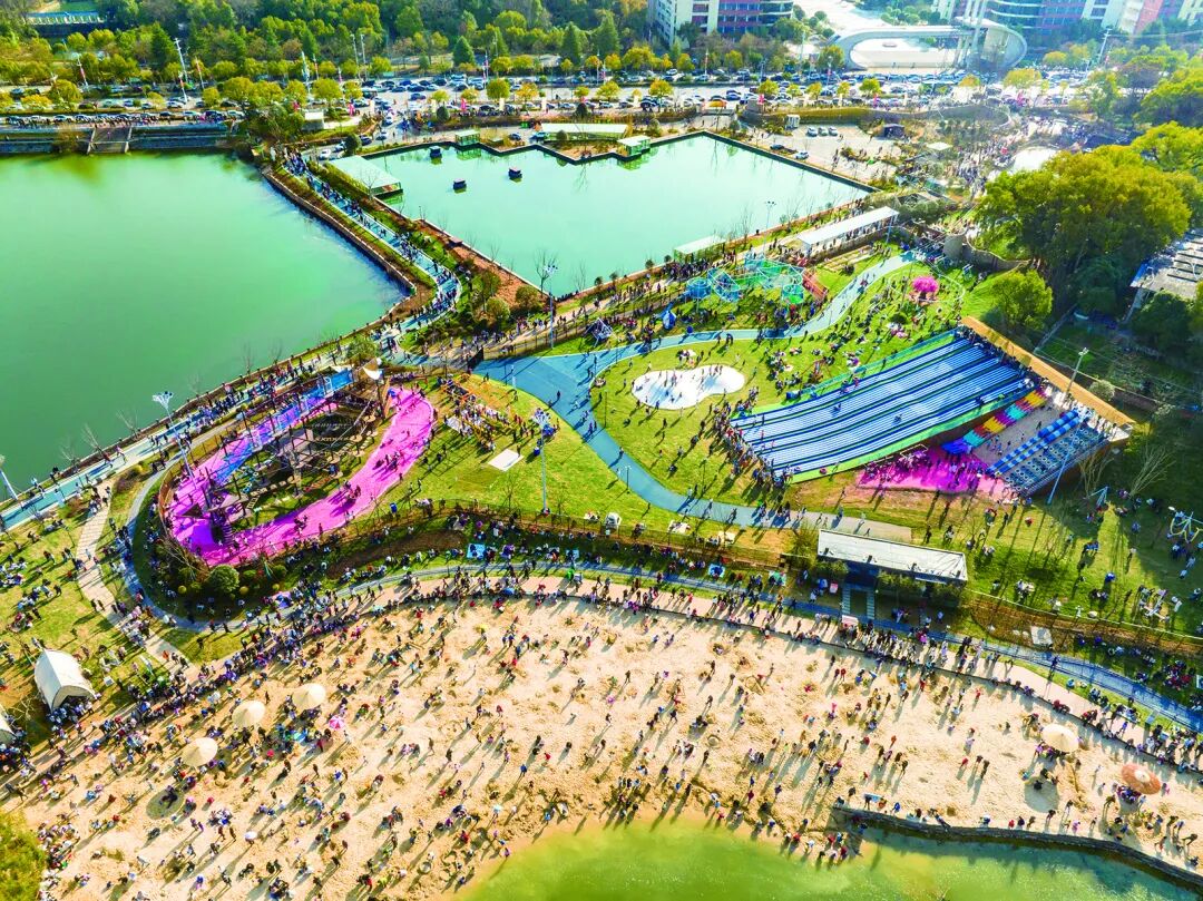 不少市民携家带口来未苏湾享受充满暖意的假日时光