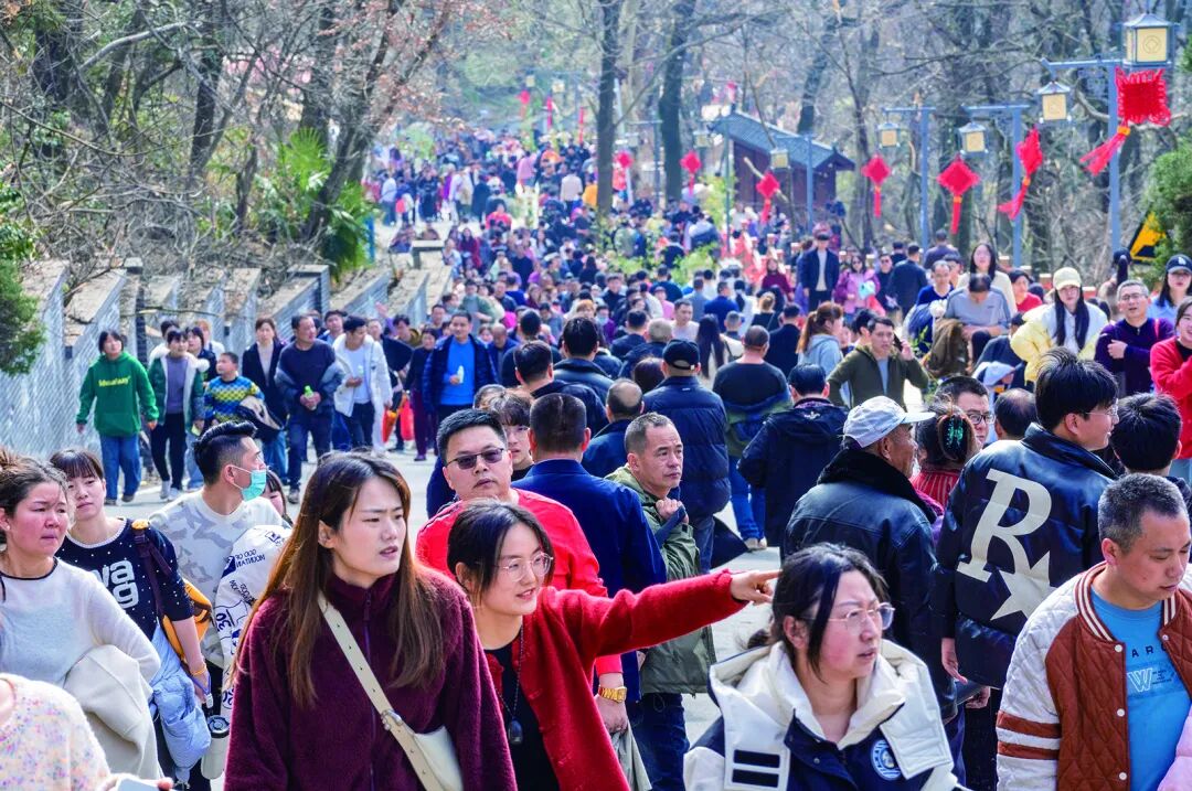 络绎不绝的游客为东方山景区增添了浓浓的年味儿