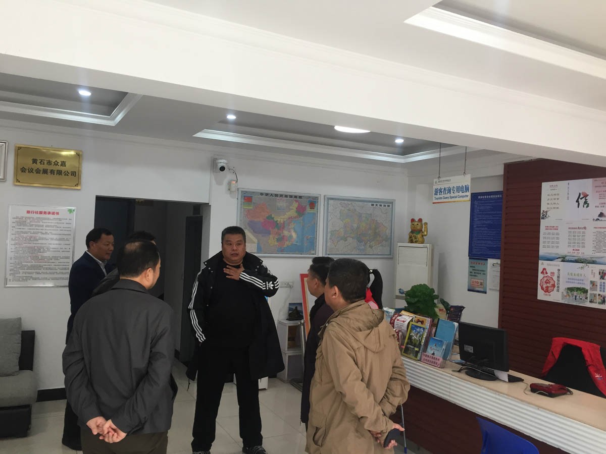 11月14日下午,省文旅厅文化市场综合执法监督处一级调研员杜勇、三级调研员袁罡两位同志来黄调研我市扫黑除恶工作,重点督导部分旅行社、景区的扫黑除恶工作。