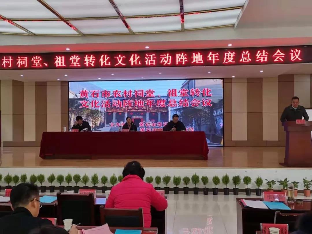与会人员现场观摩了陈贵镇小雷山村陈文钦湾祖堂、灵乡镇大畈村张仲元湾祖堂、刘仁八镇东山村周港湾祖堂等3家转化先进典型,详细了解了农村文化活动阵地建设及群众文化活动开展情况。总结会上,太子镇、白沙镇、刘仁八镇相关负责人分享交流了转化经验,大冶市、阳新县、开发区•铁山区祠堂转化工作负责人先后汇报了祠堂转化文化活动阵地工作情况。大会通报了今年全市祠堂转化完成情况,表彰了100家祠堂转化先进典型。