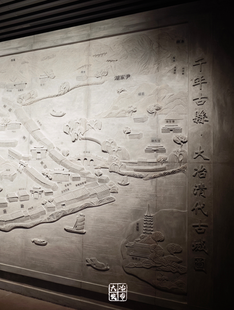 这幅《千年古县·大冶清代古城图》,由非遗大师尹国安精工雕琢,以清同治《大冶县志》为蓝本,用尹解元石雕技艺,将清代大冶的街巷烟火、亭台牌坊、山水胜景凝于一石——古八街的繁华、金湖的灵秀,皆在一雕一刻间。